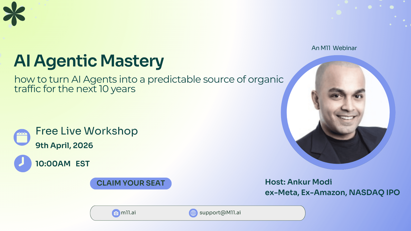 April 9th · 10am EST · Live workshop with Ankur Modi (ex-Meta, Ex-Amazon systems architect, & NASDAQ IPO veteran). 60-minutes · Q&A - ask any questions