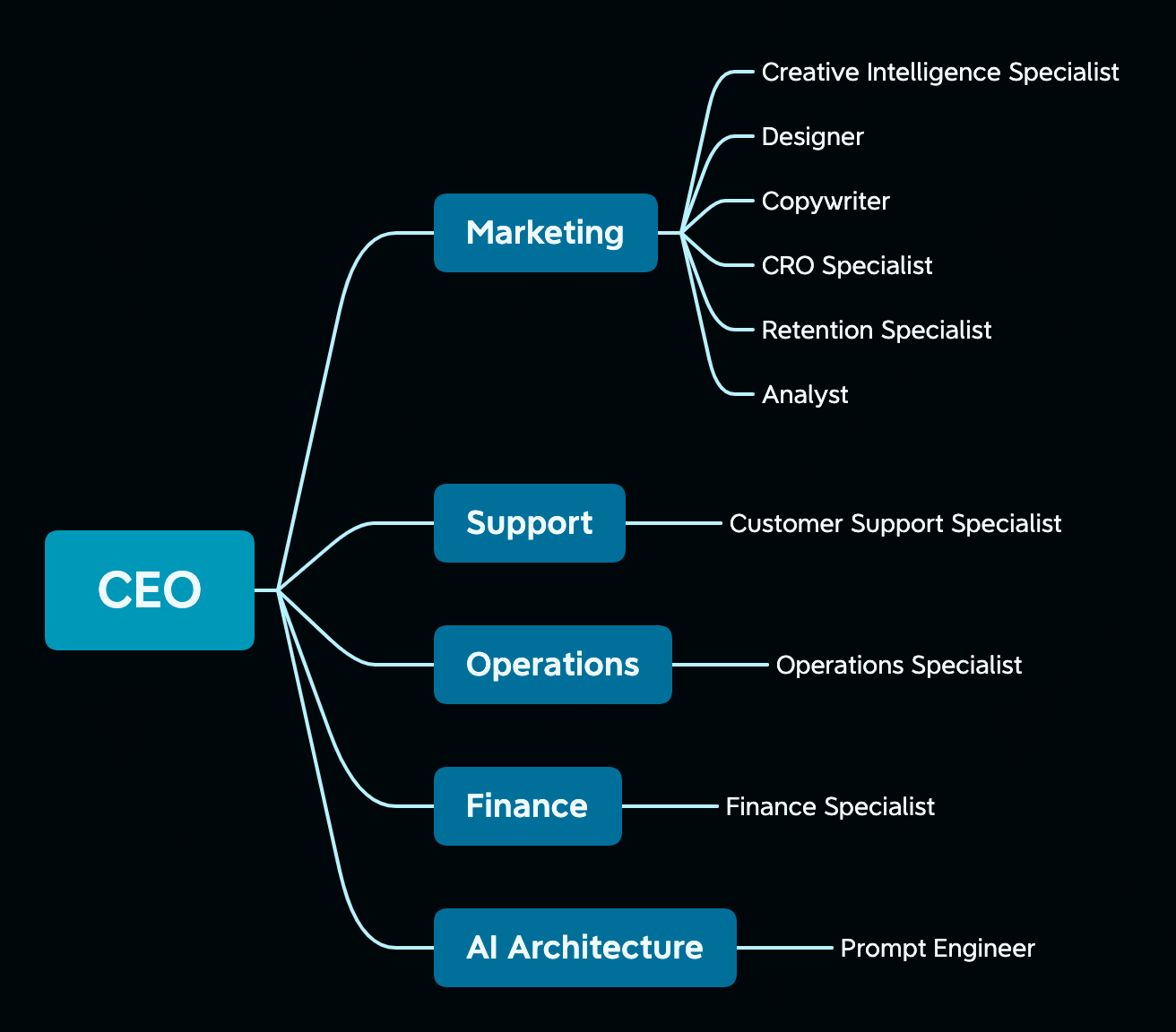 Here is the full AI org I will show you how to build through a series of emails: