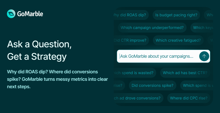 It doesn’t just crunch numbers — GoMarble watches your ads (videos as well as statics). Get insights on which visuals, formats, and hooks are converting, and which ones need a rethink.